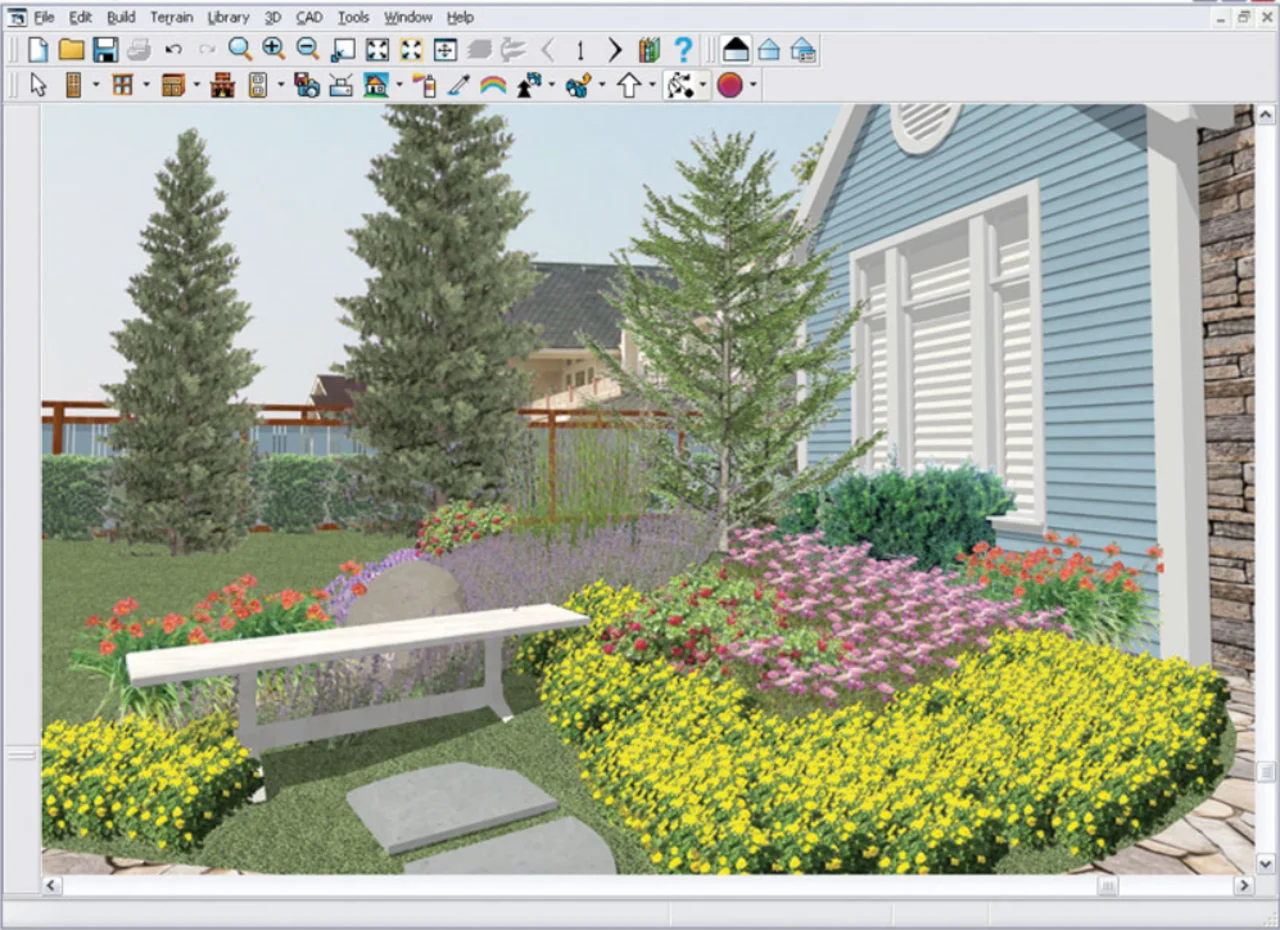 Одна из ключевых особенностей — функция моделирования роста растений. Вы можете изобразить, как сад будет выглядеть через несколько месяцев или даже 20 лет. Поддерживает проектирование домов, террас, бассейнов, заборов, водоемов и других элементов благоустройства.