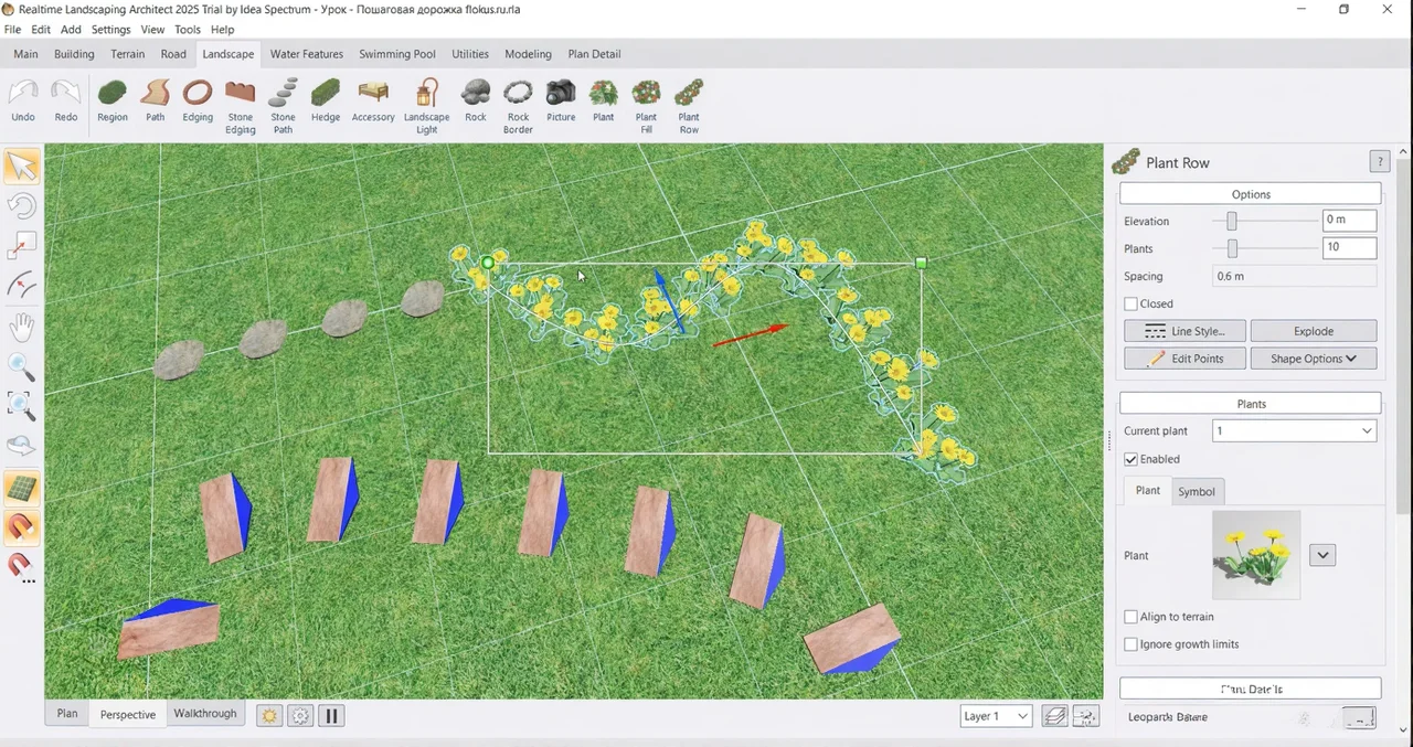 Эта программа для ландшафтного дизайна участка разработана для профессионалов, работающих на объекте. Она позволяет добавить на фото сада новые растения, покрытия, газон и другие элементы, а также рисовать простые планы с границами территории и зданиями. Существующие объекты можно убрать с помощью специального инструмента.
