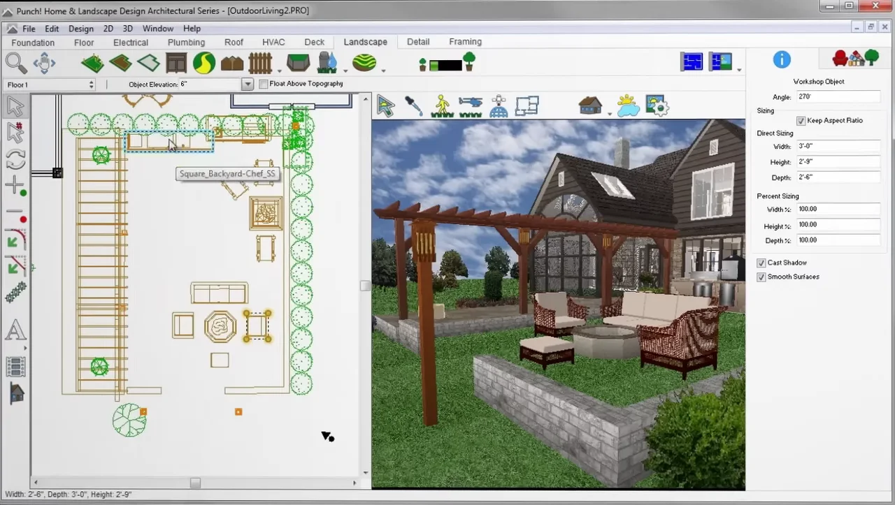 Серия программ от Punch! ориентирована на частных пользователей, ландшафтных дизайнеров и небольшие частные студии. Подходит для проектирования дома и прилегающей территории.