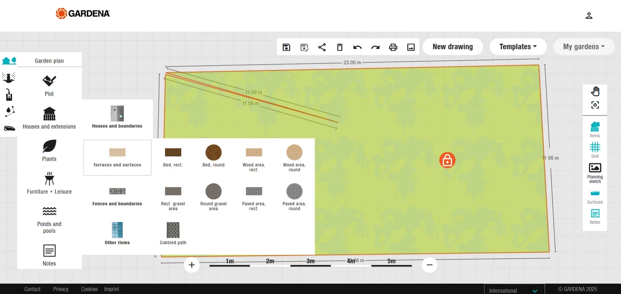 Программа для проектирования участка бесплатно в 2D. Позволяет создать детальный план, добавляя зоны и объекты из библиотеки простым перетаскиванием. Особенность сервиса — модуль для проектирования системы полива. Он автоматически проверяет корректность схемы и подсчитывает комплектующие.